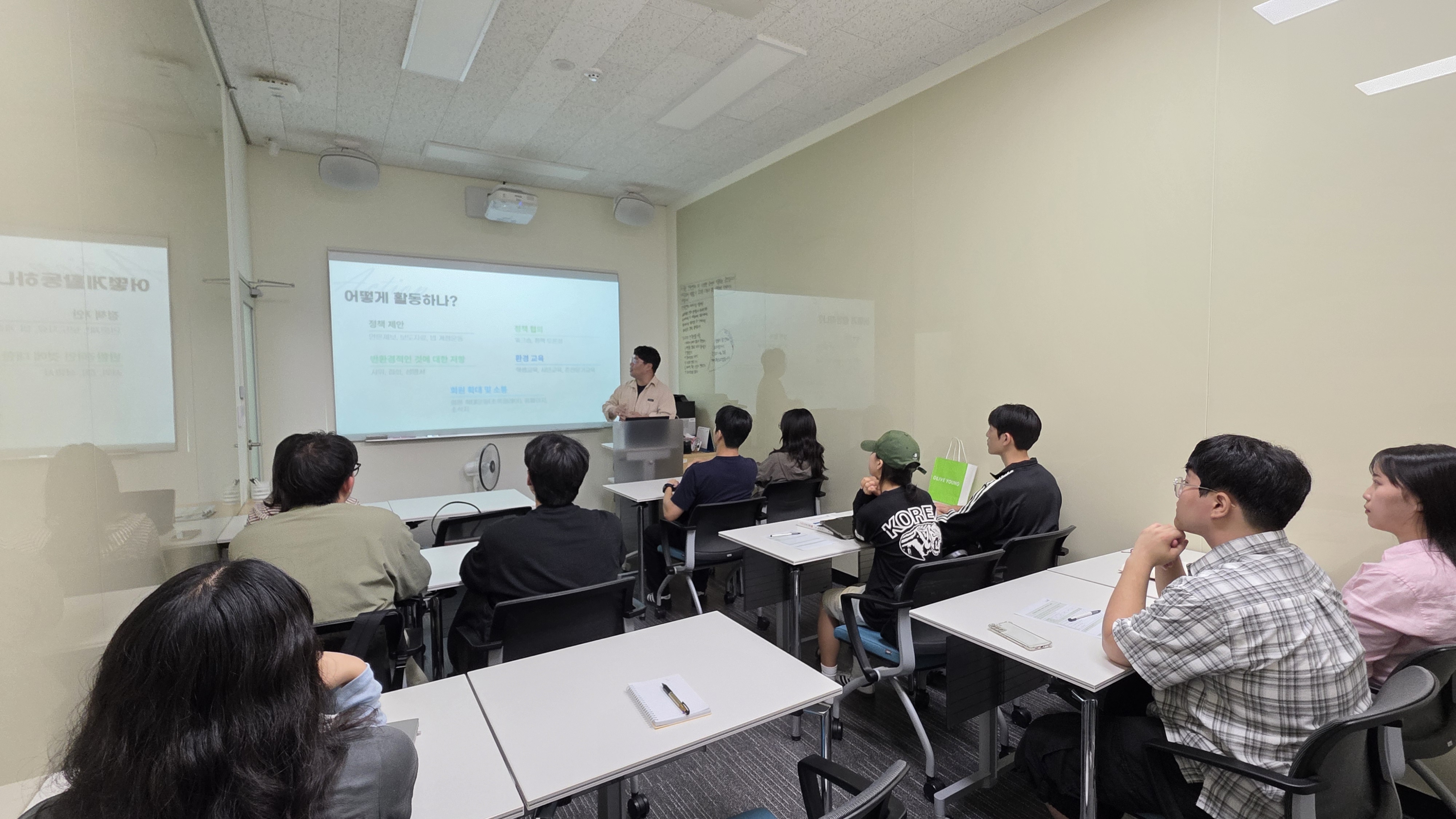 1. 주제: 서포터즈 4차 교육(기후위기와 인권) 2. 일시: 2025-10-14(화) 18:00 ~ 20:00 3. 장소: 전주대학교 인권센터 세미나실 4. 인원: 인권센터 서포터즈 9명 |