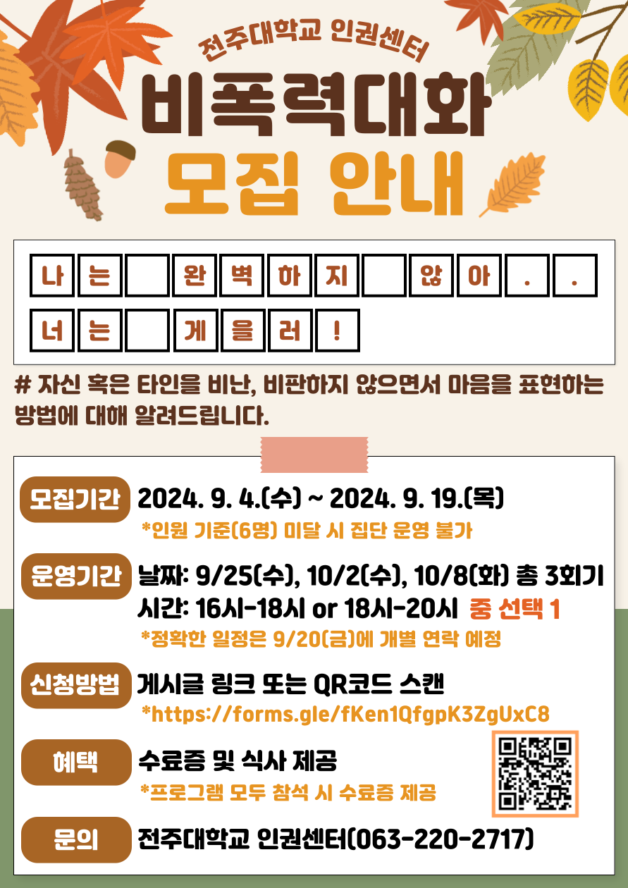 [집단상담] 2024년 2학기 비폭력대화 집단상담 참여자 모집 안내